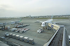 夜の空港の送迎デッキから見た滑走路はまるで宝石をちりばめた様な